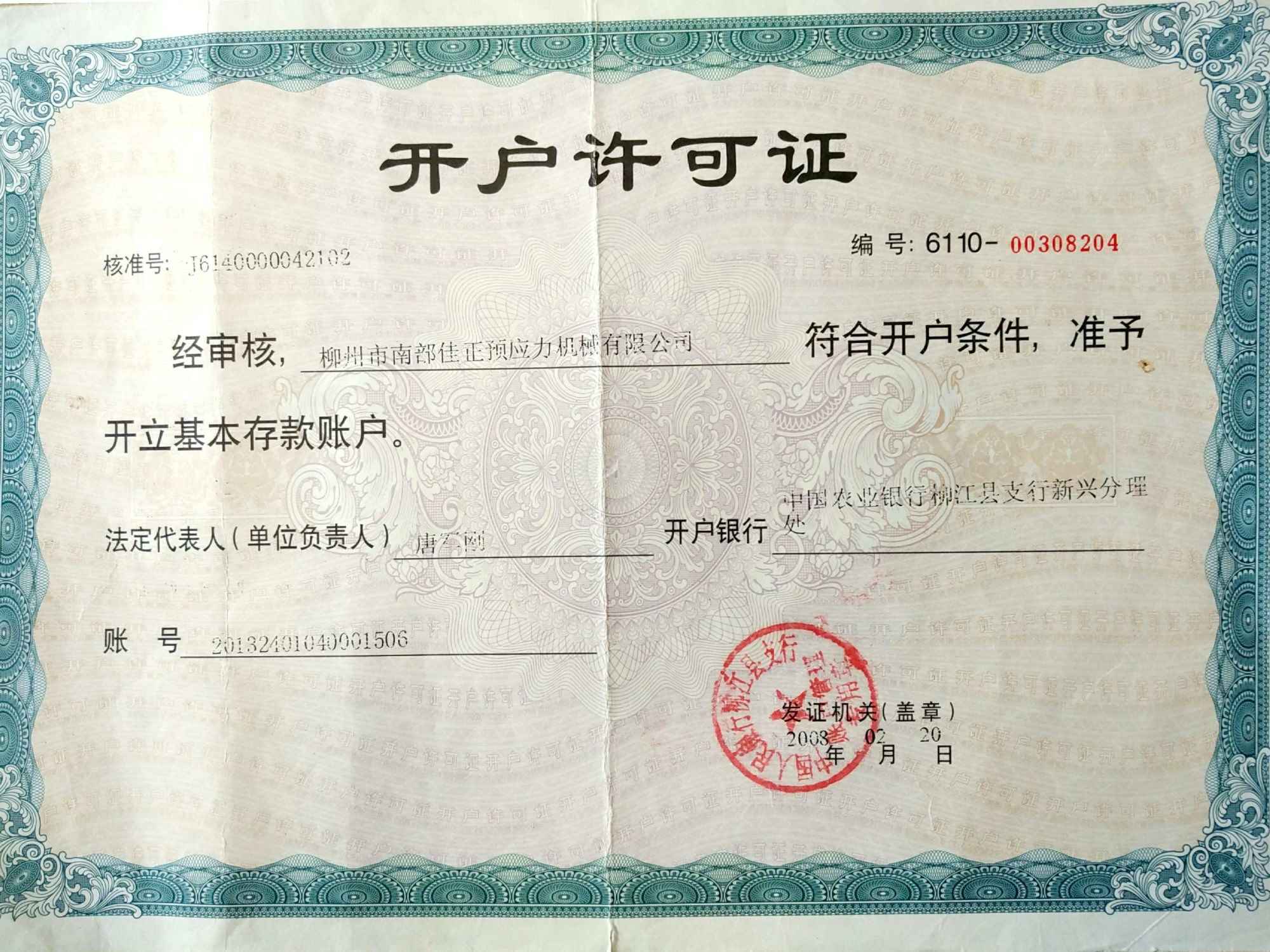 Bank account permit