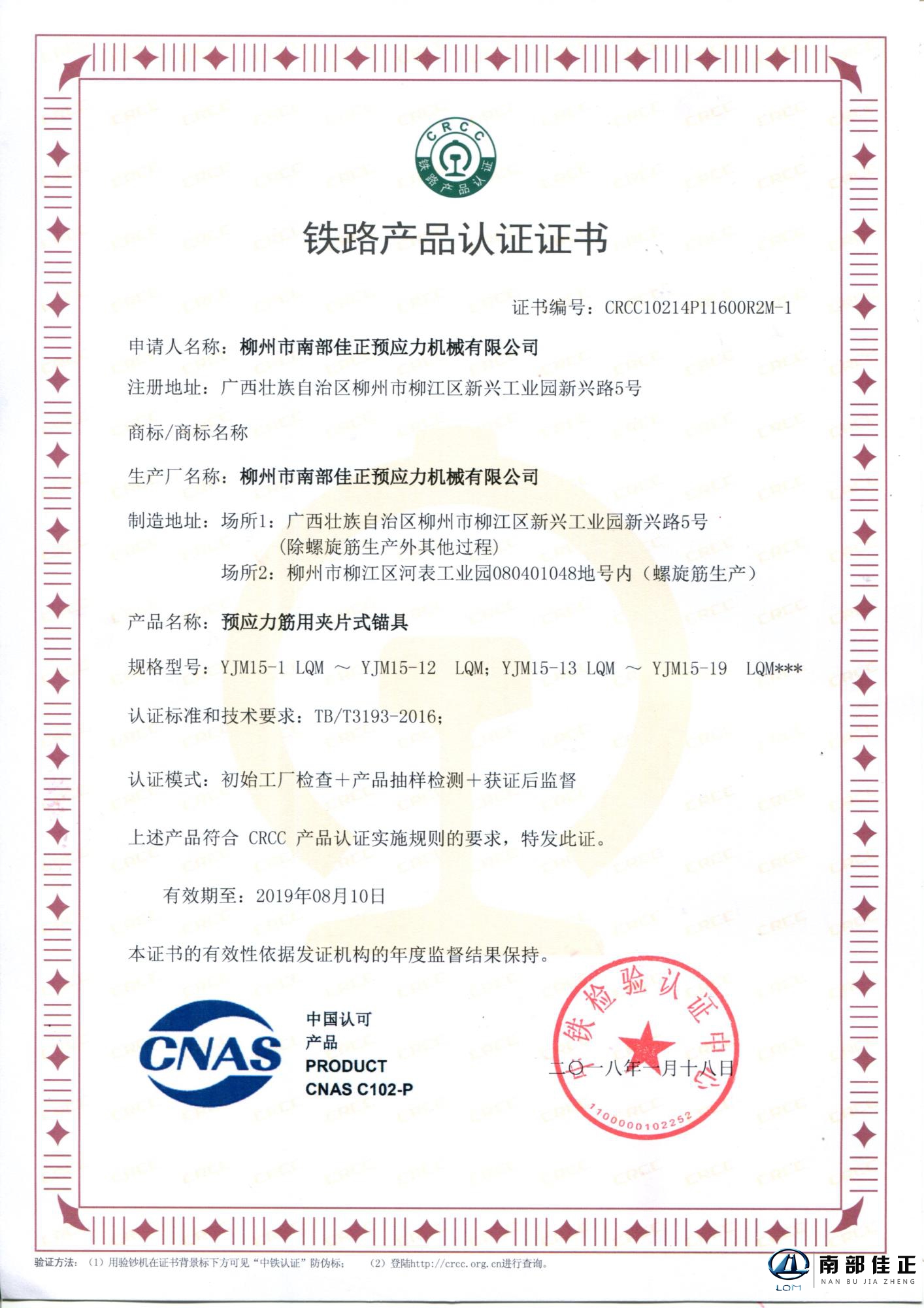 CRCC認(rèn)證證書